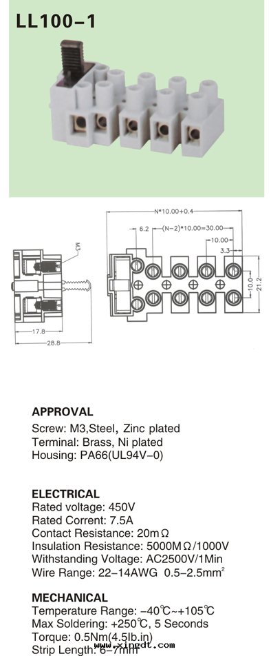 LL100-1 貫通(tòng)式接线端子 feed through terminal block
