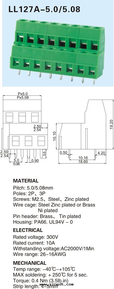 LL127A-5.0/5.08 PCB螺釘式接线端子