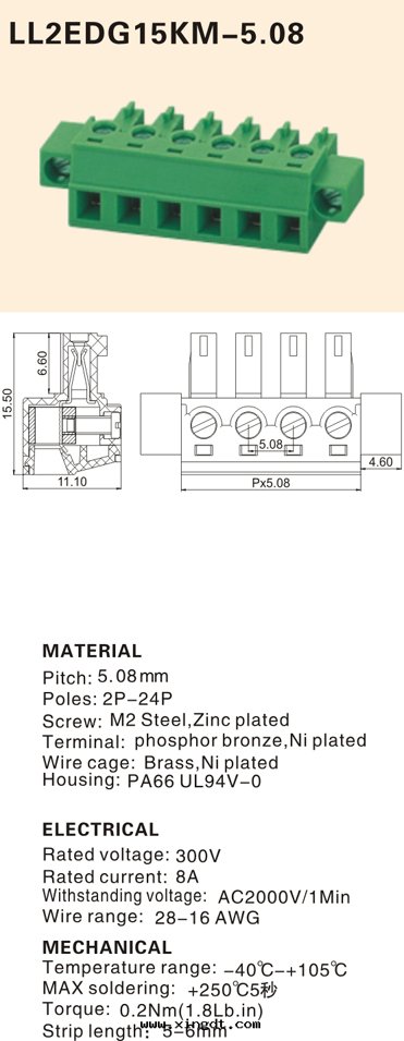 LL2EDG15KM-5.08 插拔式接线端子
