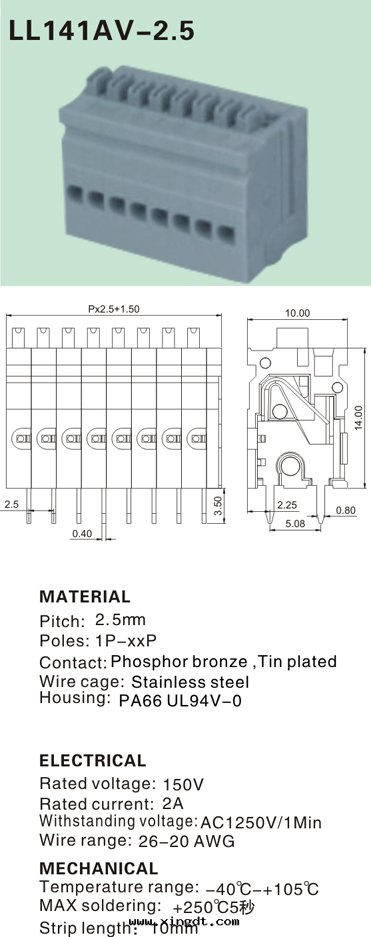 LL141AV-2.5 pcb彈簧式接线端子