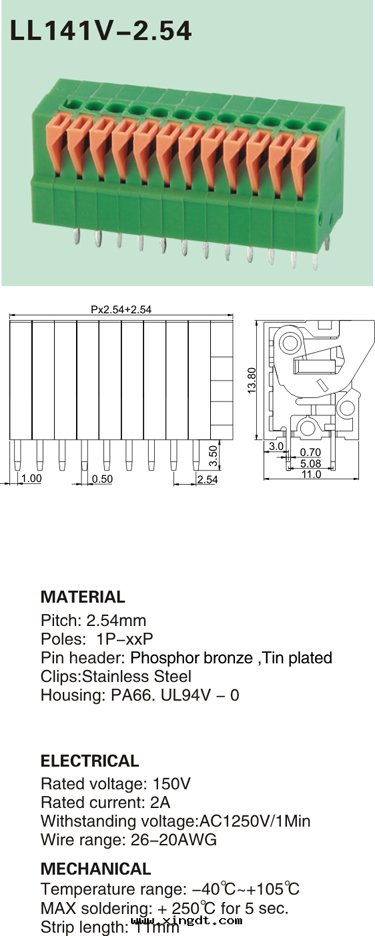 LL141V-2.54 pcb彈簧式接线端子