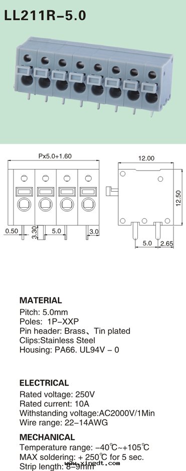 LL211R-5.0 pcb彈簧式接线端子