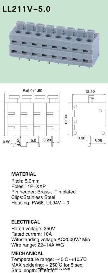 LL211V-5.0 pcb彈簧式接线端子 pcb spring terminal block