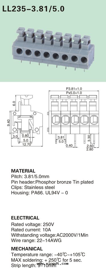 LL235-3.81/5.0 彈簧式接线端子 pcb spring terminal block