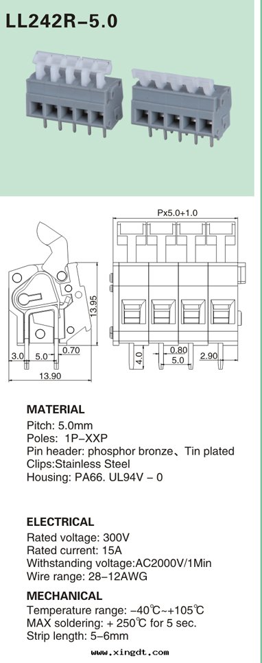 LL242R-5.0 pcb彈簧式接线端子 pcb spring terminal block