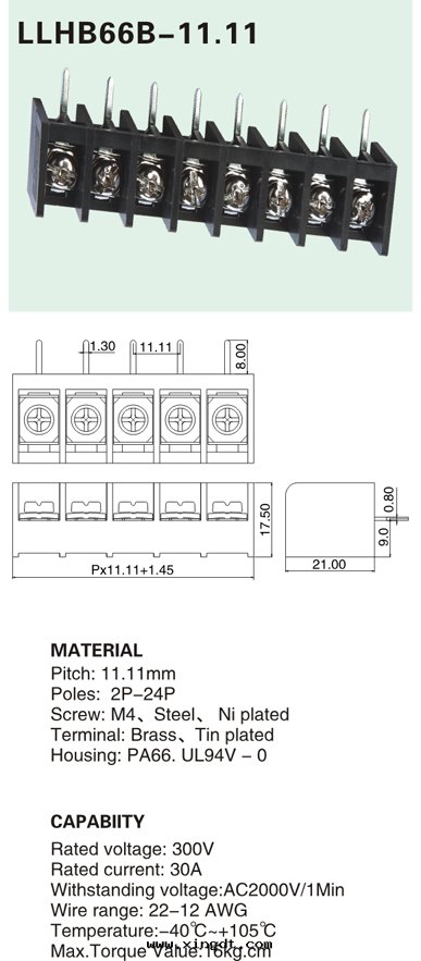 HB66B-11.11 黑色(sè)栅欄式接线端子 電(diàn)源座 工業電(diàn)源用(yòng)端子 橫腳(jiǎo)