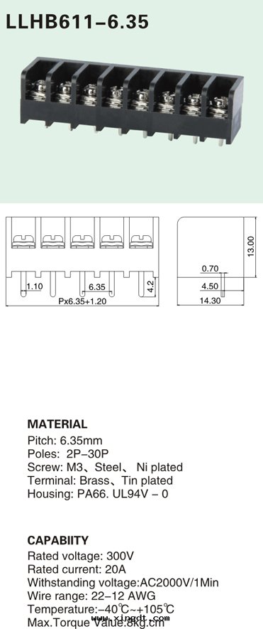 HB611-6.35 栅欄式接线端子 黑色(sè)電(diàn)源座 barrier terminal block