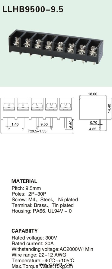 HB9500-9.5 栅欄式接线端子 黑色(sè)電(diàn)源座 barrier terminal block
