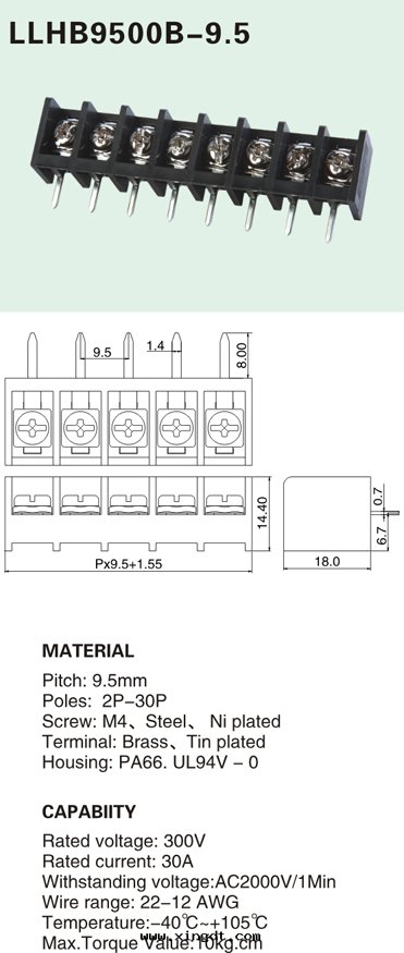 HB9500B-9.5 栅欄式接线端子 黑色(sè)電(diàn)源座橫腳(jiǎo) barrier terminal block